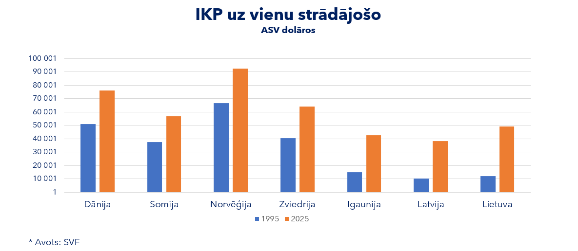 IKP uz vienu nodarbināto ir būtiski pieaudzis, taču jārēķinās, ka Latvijā vidēji tik un tā esam paši nabadzīgākie visā Baltijā.